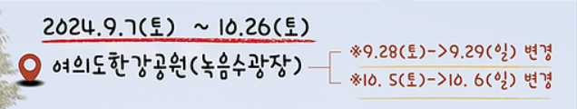 - 여의도 한강공원 녹음수광장 (9/7 ~ 10/26)